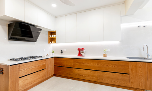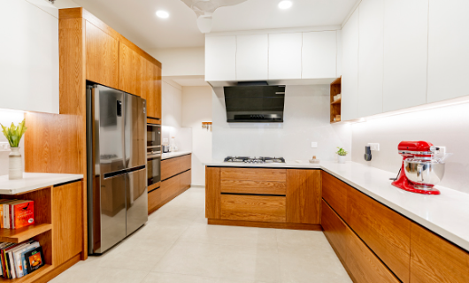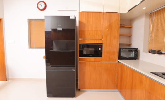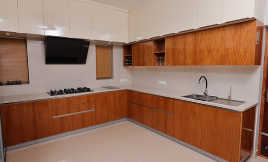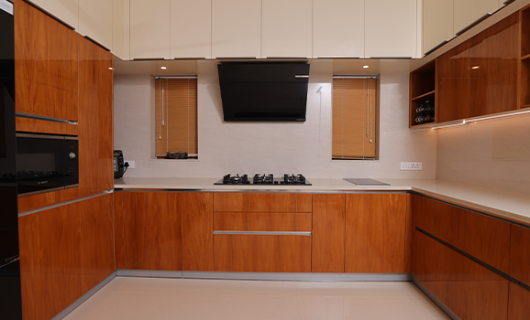 The best way to add a dash of natural beauty to your modular kitchen is by going for a veneer finish. Veneers highlight the natural beauty of wood grains by applying thin layers of real wood, creating a refined look and a natural appearance. Ideal for doors, tops, and cabinets, they maintain a natural feel for any kind of modular kitchen in Kerala while creating a welcoming atmosphere. Veneer offers a variety of wood grains and textures, adding depth and richness to your kitchen without overwhelming the space.Uniwood’s veneer finishes are all about creating a stylish and inviting atmosphere that makes your kitchen a place to truly enjoy. Plus, with their low-maintenance nature, you can enjoy lasting beauty without the hassle.
